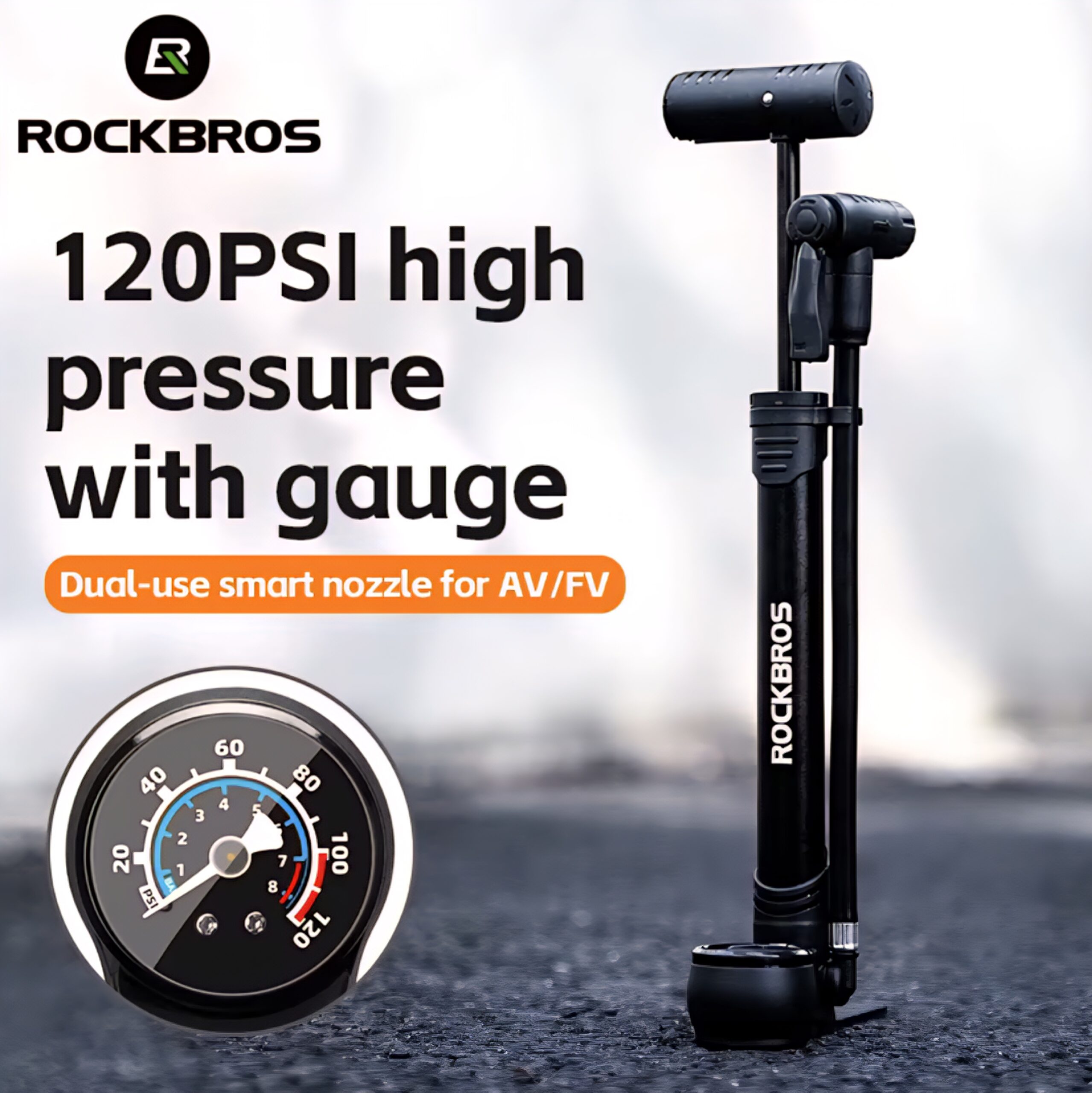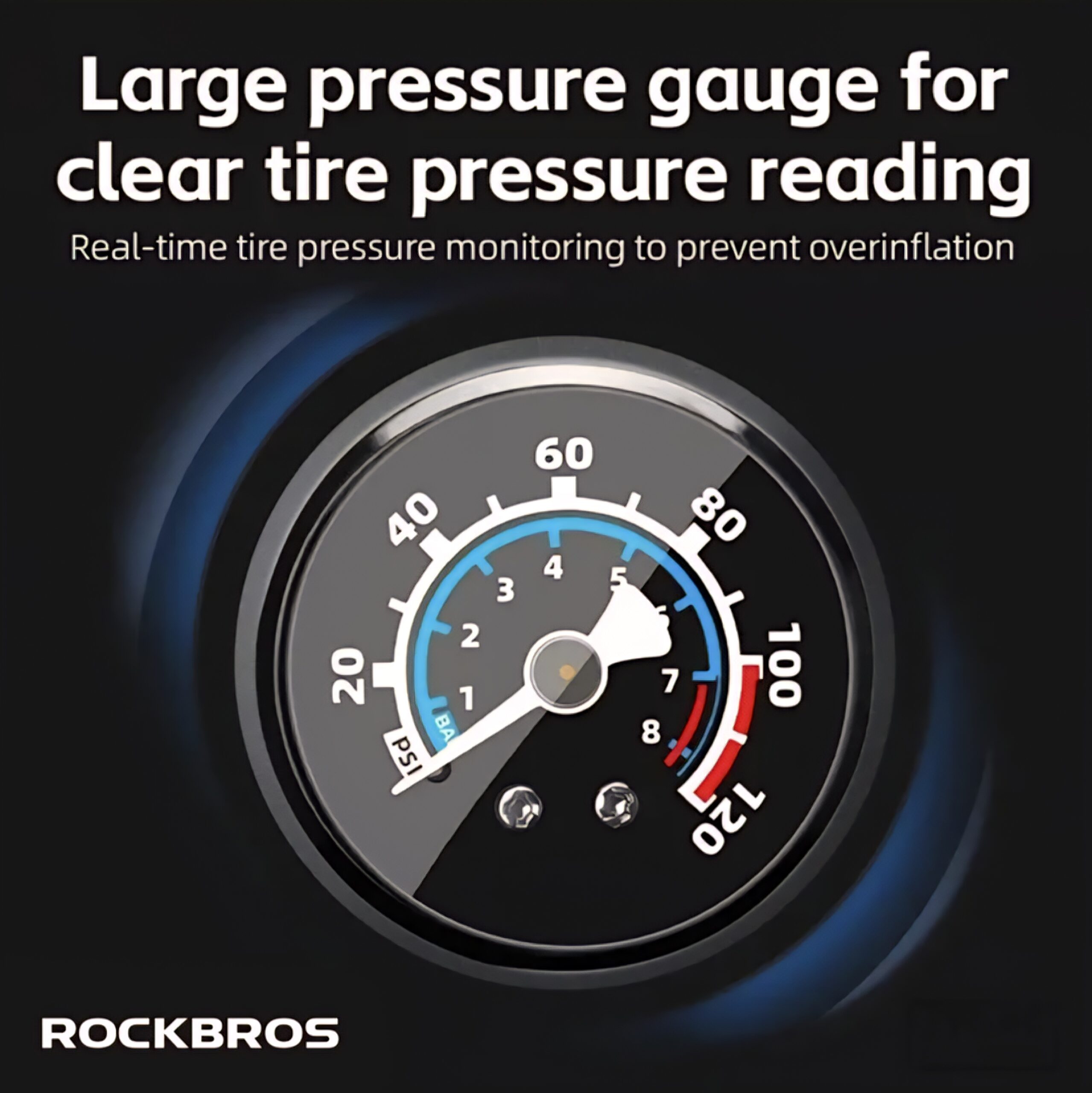 INFLADOR ROCKBROS CON MANÓMETRO.